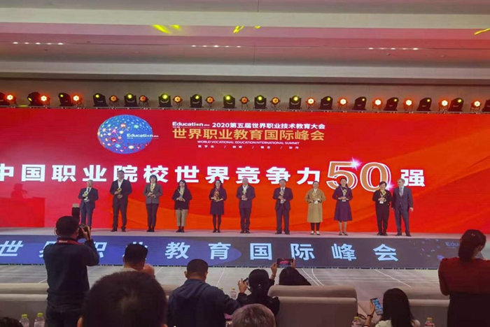 在大会的世界职业教育国际峰会和世界职业技术教育信息化高峰论坛上,兰州石化职业技术学院被授予“2020中国职业院校世界竞争力50强”和“2020中国职业院校智慧校园50强”,“兰州石化职业技术学院以服务‘走出去’企业为突破,积极融入‘一带一路’建设与实践,中-文‘1+1+1’石化人才联合培养项目案例分析”和“基于新时期信息化建设的规划与实践——以兰州石化职业技术学院为例”两个案例分别入围2020第五届中国(青岛)世界职业技术大会优秀案例和2020中国职业院校智慧校园50强优秀案例。