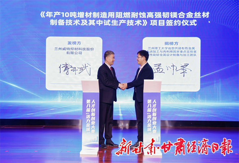 大赛同期公布了2025年兰州市青年科技人才创新项目入围名单,涵盖生物医药、装备制造、新材料、新能源、现代农业等领域共200项;发布了“外诊断试剂磁性微球研发”等2项“揭榜挂帅”技术攻关需求,并现场签约了“年产10吨增材制造用阻燃耐蚀高强韧镁合金丝材制备技术及其中试生产技术”揭榜项目。