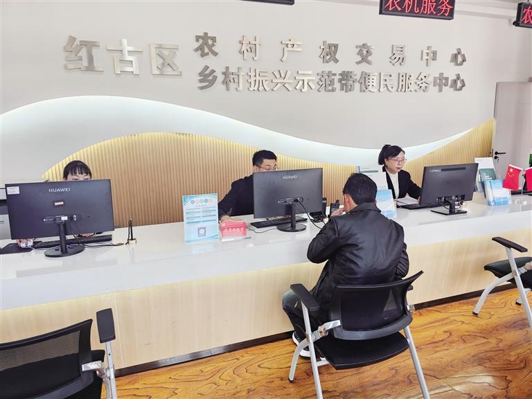 市民在红古区农村产权交易中心办理业务