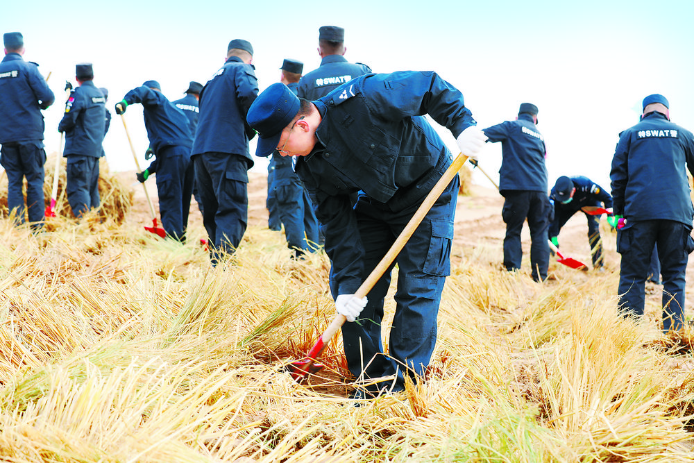 10月23日,武威市公安局组织机关民辅警职工开展秋季义务压沙活动。新甘肃·甘肃法治报通讯员 常建通 摄