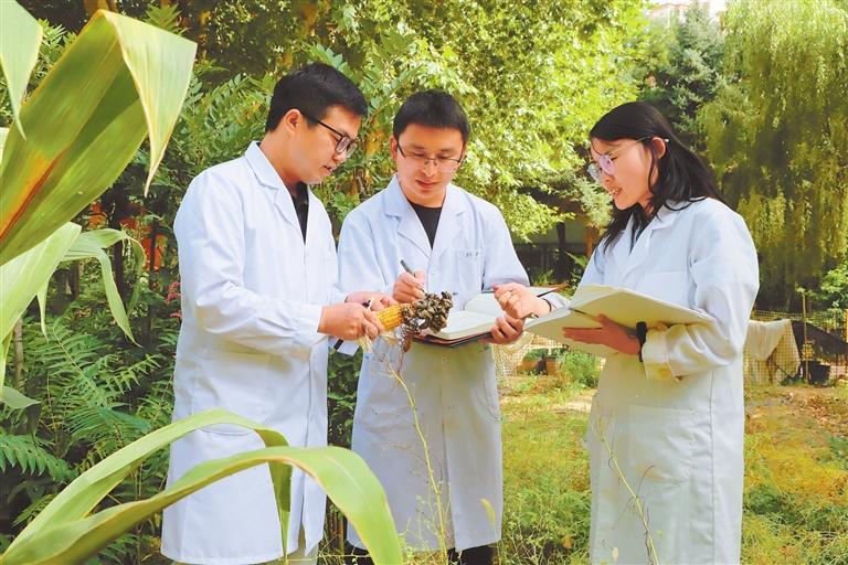 甘肃农业大学学生在“百草园”里观察农作物生长情况。本文图片均由新甘肃·甘肃日报通讯员郑芃生摄