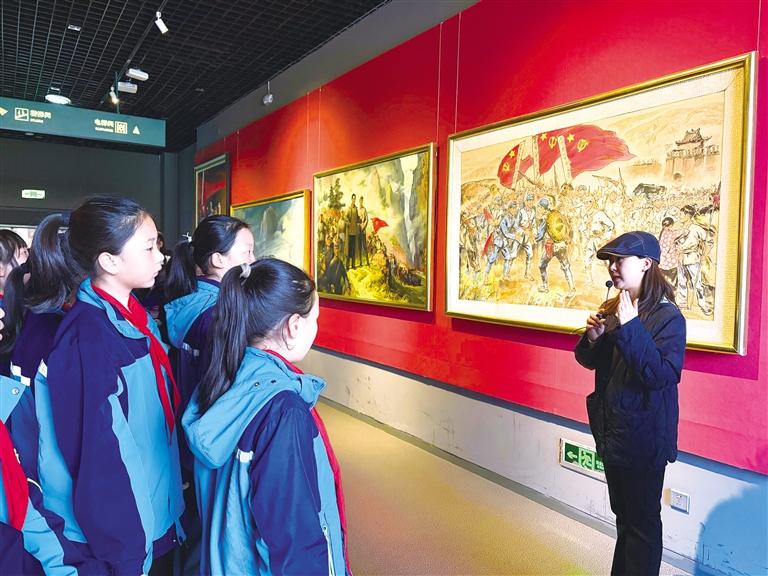 师生列队完成徒步后,前往甘肃省博物馆“红色甘肃”展厅学习。活动由博物馆讲解员与校内思政教师联合授课,以革命文物、历史场景和先辈事迹为教学内容,让学生感悟革命历史与长征精神。